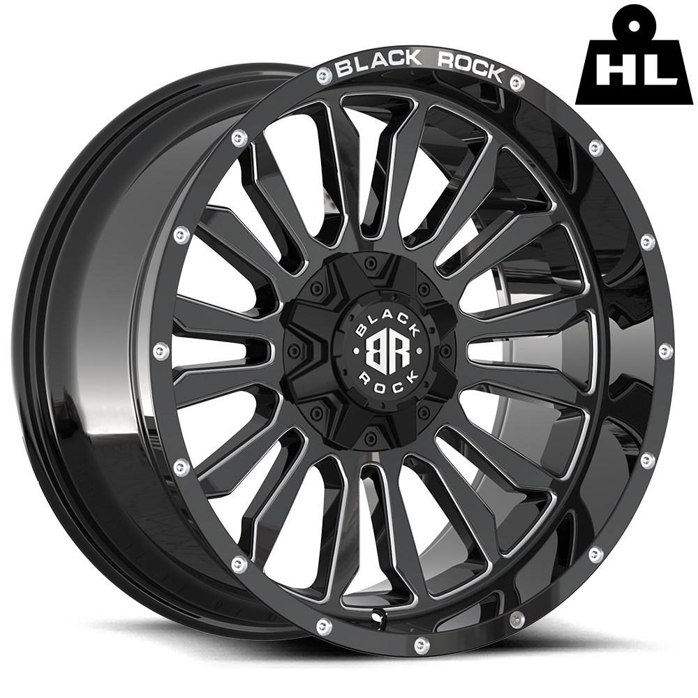 Black Rock Victory gloss black milled wheel is a stylish take on classic spoke pairings. The Victory features a sturdy multi-spoke design with stunning gloss black milled accents on the spokes and inner lip making each individual spoke add layers of depth. Available in aggressive fitments with ET-12 offset for heavy-duty trucks and 4WDs.